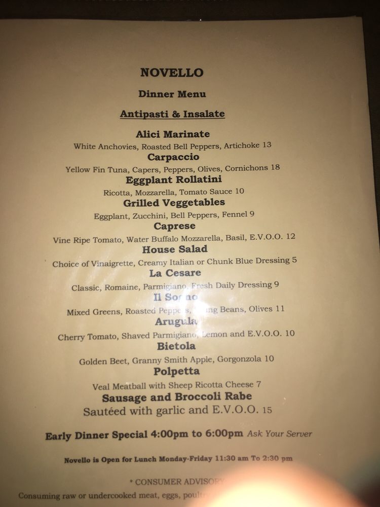 Nestled in Boca Raton, Novello Restaurant & Bar exudes elegance and sophistication, offering a blend of intimacy and upscale dining. As a food reviewer, I am impressed by the diverse menu showcasing exquisite Antipasti & Insalate options like Clams Oreganata and Burrata. The Pasta & Risotto selection boasts homemade Gnocchi and Risotto Frutti di Mare that are a delight for the taste buds. Moving on to Secondi Piatti, the Chicken Novello and Dover Sole stand out for their flavorful combinations. Customer reviews raving about the top-notch service and high-quality Italian cuisine reinforce Novello's reputation as a must-visit dining destination. Boasting a tranquil ambiance, excellent wine list, and attentive staff, Novello Restaurant & Bar truly sets a high standard for fine dining experiences.